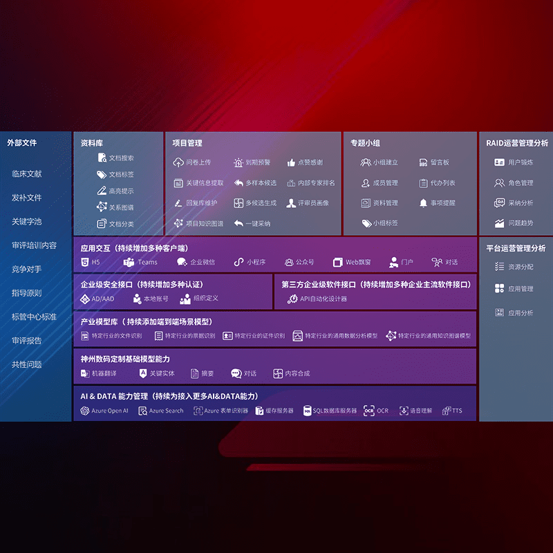 医疗器械产品上市前,,,,要熟悉严格与繁复评审标准,,,整理分析监管机构指导文件中的海量信息。。。。企业急需一个智能化解决方案,,,提升知识管理效率,,提高评审通过率,,,以提升其市场竞争力。。。
